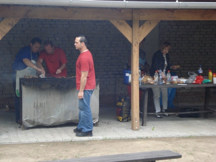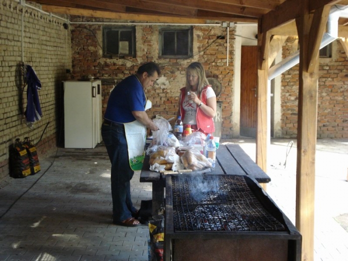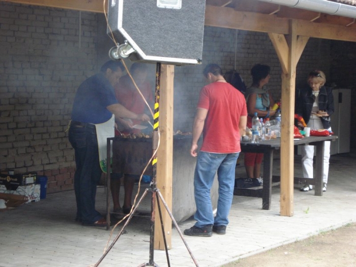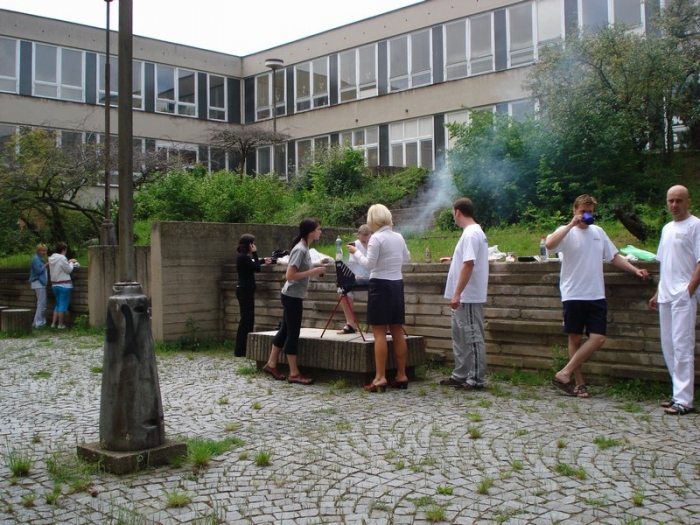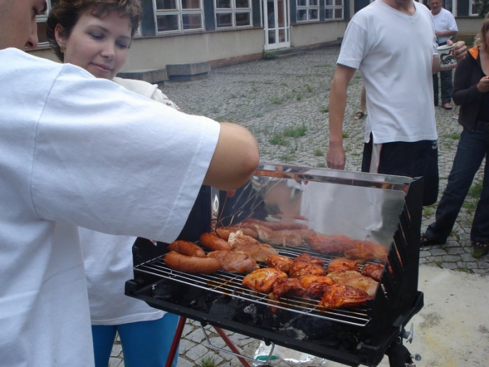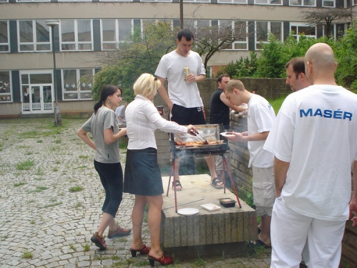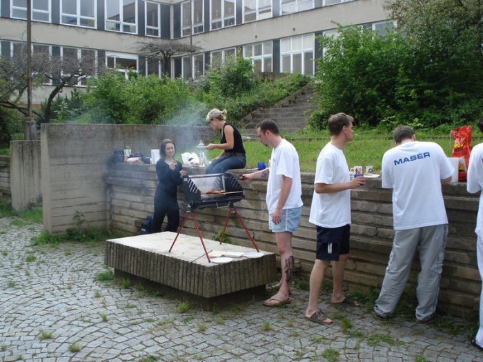Když je teplo, tak si oběd ugrilujeme venku ve školním atriu.